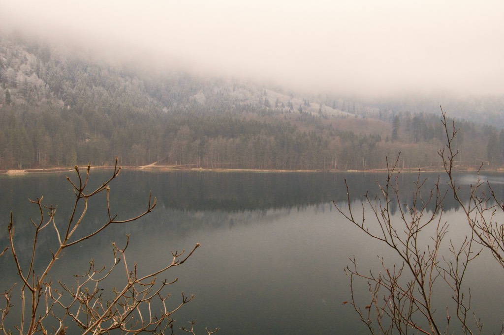 Auf diesem Stück, bis zum Ende des Sees, hat man immer wieder traumhafte Aussichten auf den See und das andere, bewaldete Ufer. Leider war es auf unserer Wanderung zunächst recht trübe, so dass wir nur auf einen Teil des anderen Ufers schauen konnten.